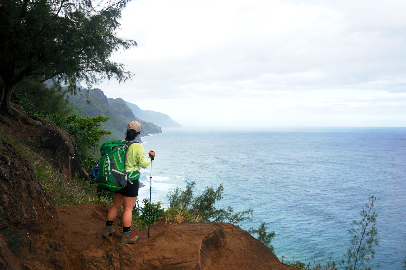 My pack had its own gravitational pull. I quickly realized I had over packed — too much water, too many just-in-case items. I could feel it on my feet as I sunk into Kauai’s red earth.
